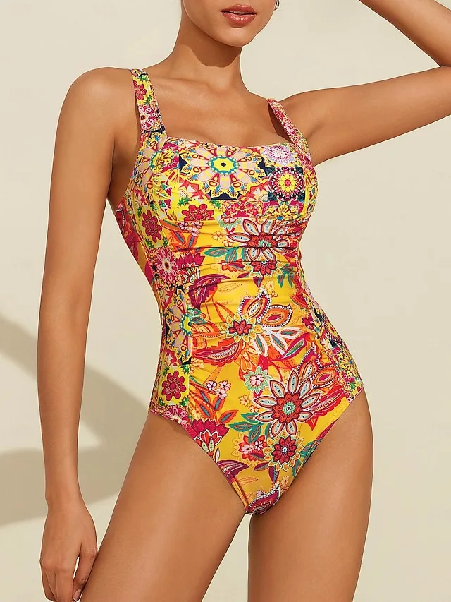 Eleganter Boho-Badeanzug mit gerafftem Design, hoher Elastizität und verstellbaren Trägern. Jetzt stilvoll für Strand und Pool shoppen.