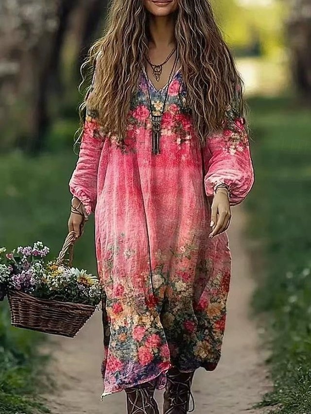 Discover elegance with our Boho Swing Floral V Neck Midi Dress. Perfect for daily wear or vacations. Embrace vintage charm and modern style.