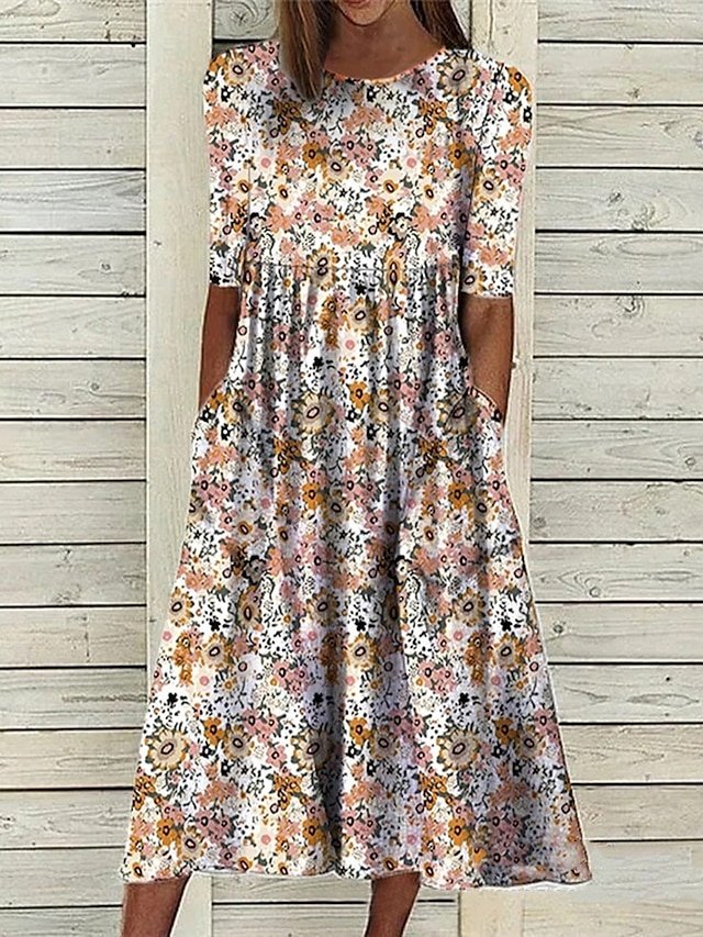 Elevate your summer wardrobe with our exquisite Casual Basic Floral Crew Neck Half Sleeve Midi Dress, a perfect blend of elegance and comfort. Crafted for the modern woman, this dress is your ideal companion for daily outings or dreamy vacations.