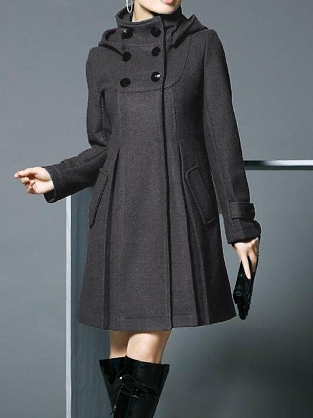 Discover elegance and warmth with our long sleeve winter coat. Perfect for daily wear, featuring a stand collar and pockets in solid colours.