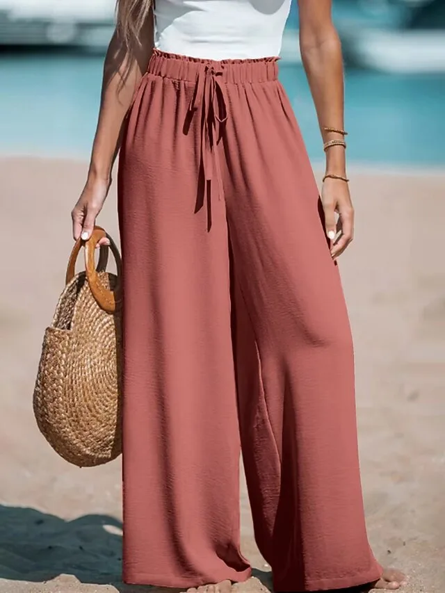 Diese Hose verbindet mühelosen Komfort mit einer modernen, entspannten Eleganz. Der lockere Schnitt und die schmeichelhafte hohe Taille machen sie zu einem vielseitigen Essential für stilvolle Alltagslooks und Urlaubsmomente.