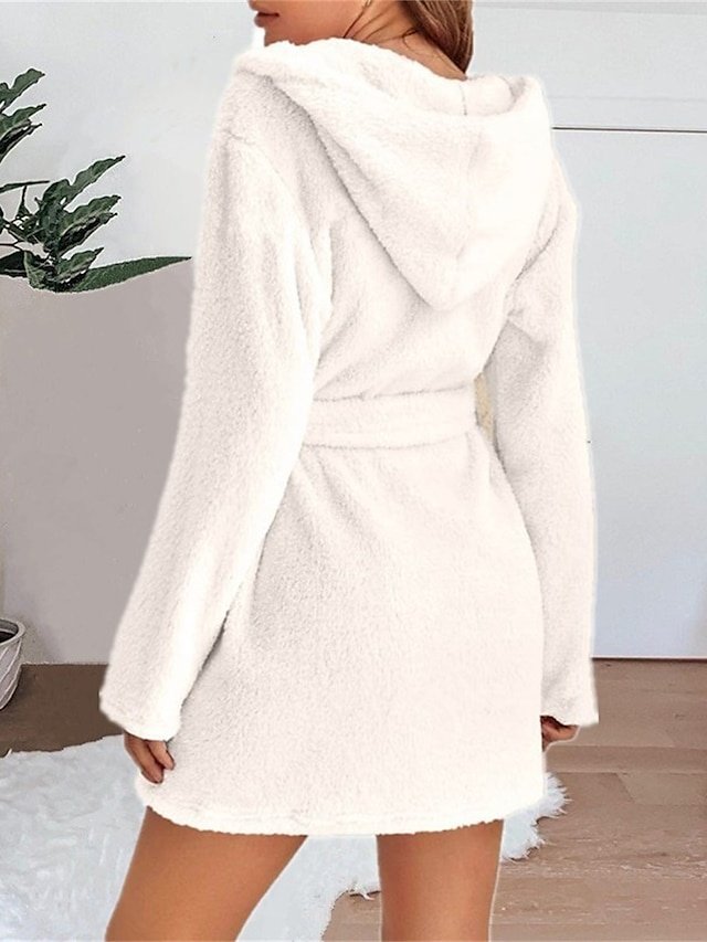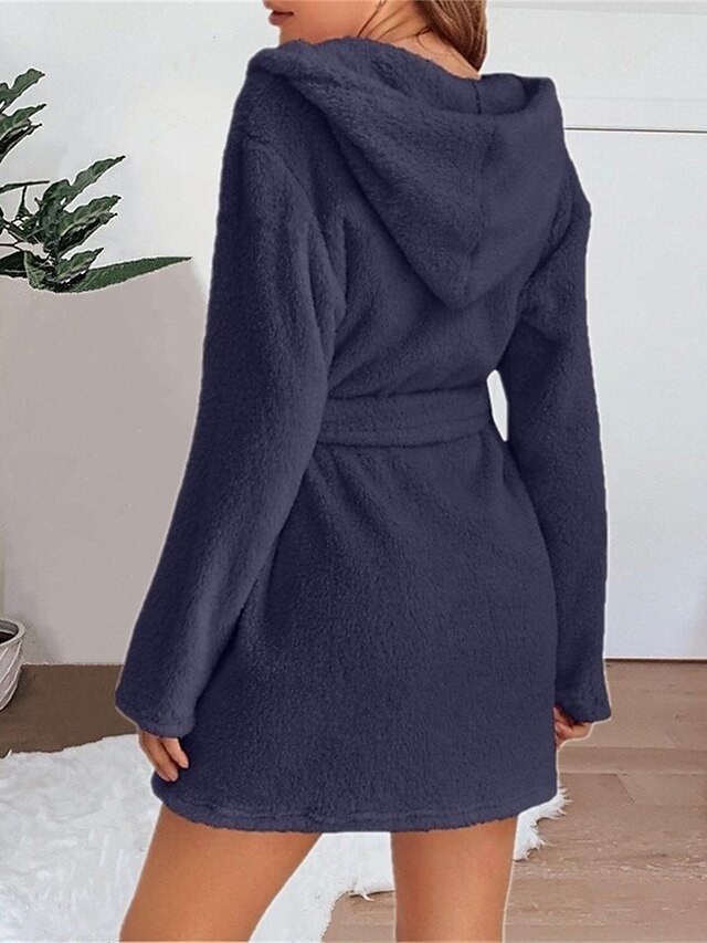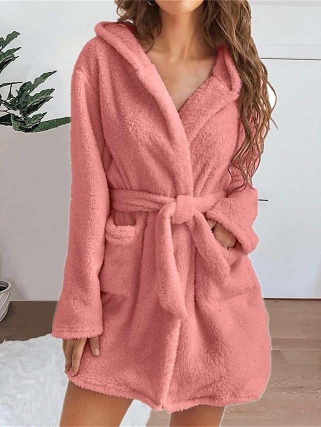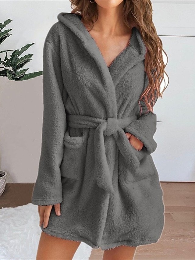 Indulge in comfort with our Casual Pure Colour Hoodie Robe, perfect for fall and winter. Soft coral fleece and practical pockets make it a home essential.