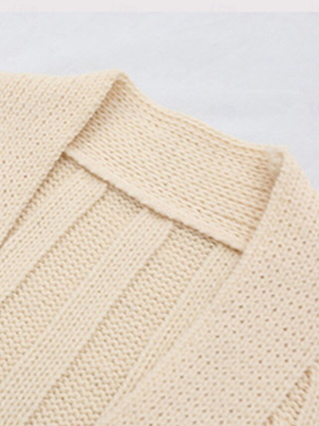 - Design: Crafted with a ribbed texture, it features a flattering V neckline and practical pockets.