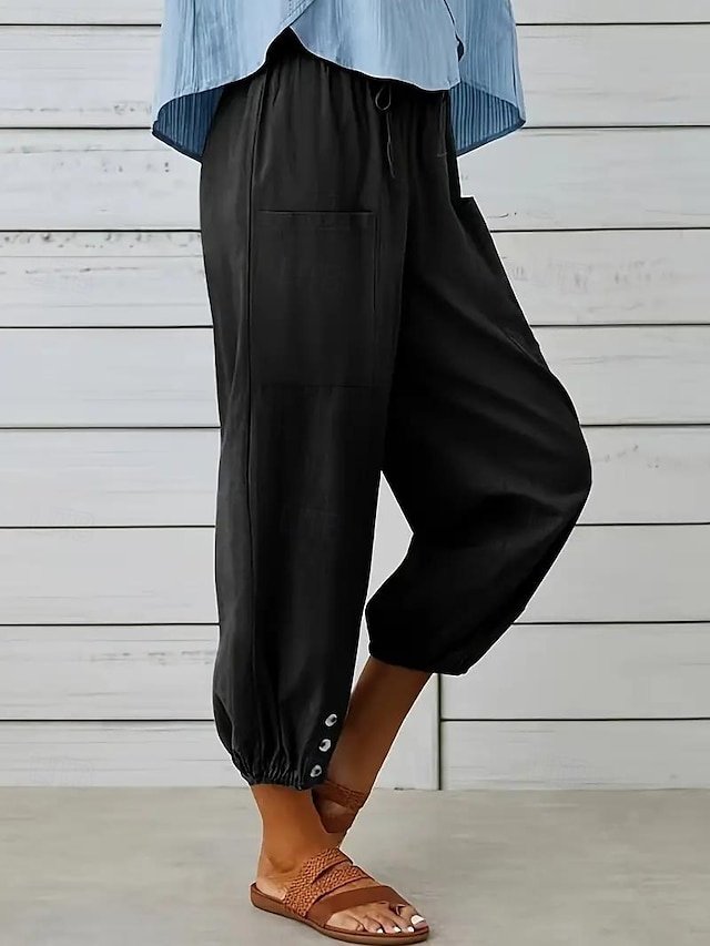 Step into the world of unparalleled comfort and effortless style with our Casual Loose Solid High Waist Knee Length Harem Pants. Perfect for the modern woman who values both fashion and functionality, these pants are your go-to choice for spring and summer outings.