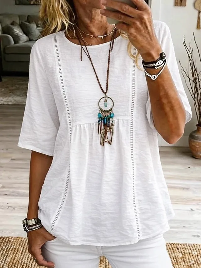 Stilvolle, einfarbige Bluse mit lockerer Passform und Halbarm. Perfekt für Alltag und Saisonwechsel – jetzt entdecken.