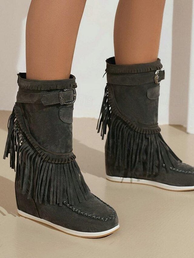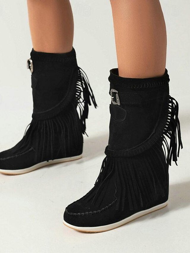 Casual Mid-Calf Fringe Moccasin Suede Boots