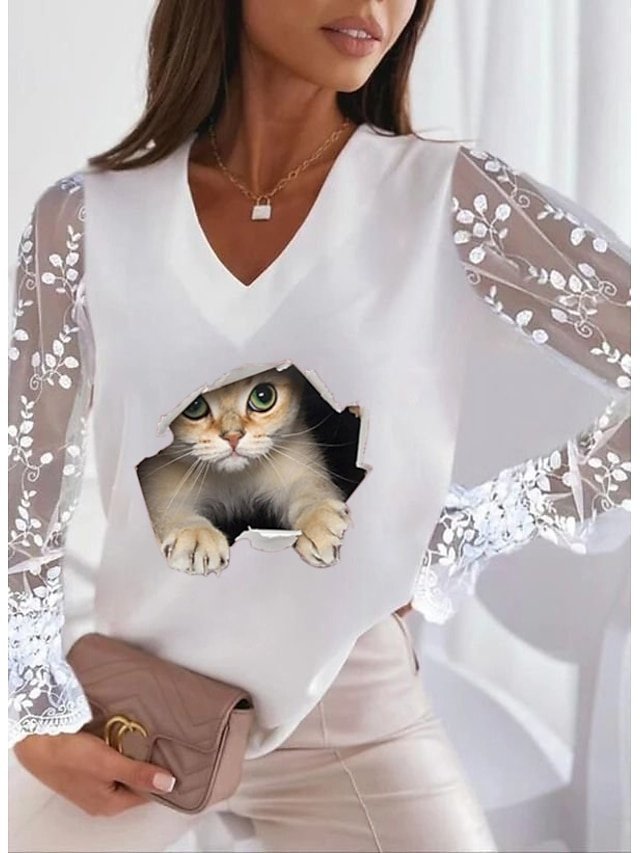 Shop the Casual Animal Print V Neck T-Shirt. Perfect for plus-size, with long sleeves and patchwork design. Ideal for fall & winter.