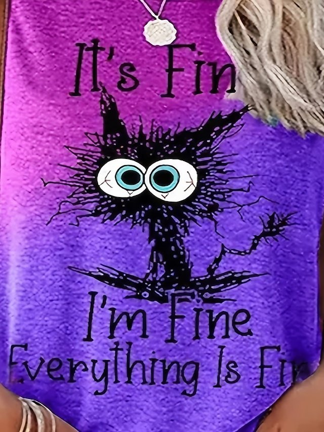 Embrace effortless charm with our delightful Casual Regular Cat Patchwork Print T-shirt. This chic staple is perfect for those who love to express themselves with a touch of playful elegance. The enchanting cat motif combined with a witty quote seamlessly brings joy into your daily wardrobe.