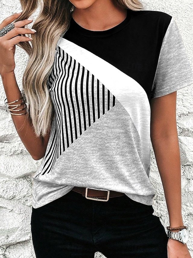Casual Regular Colour Block Round Neck Short Sleeve Summer Top