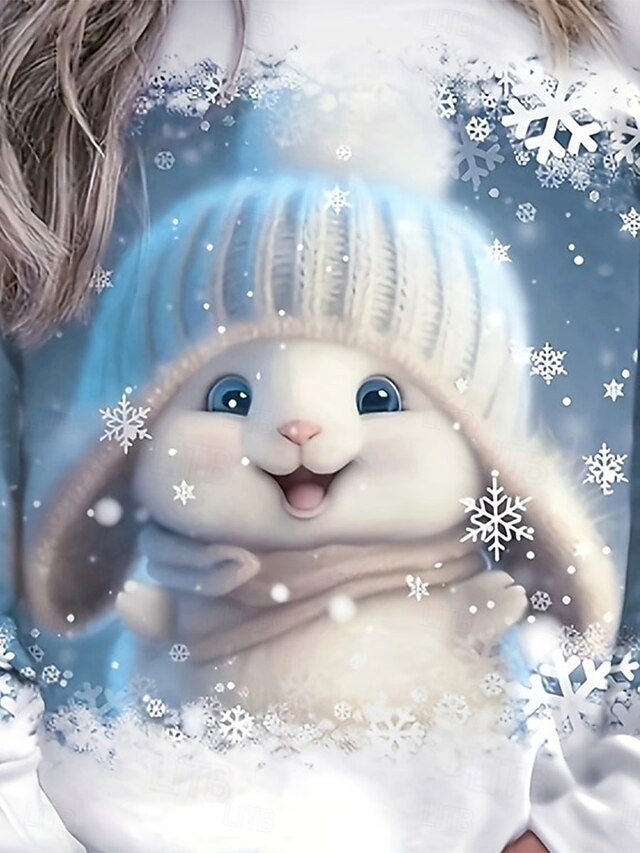 Stay cosy this winter with our blue sweatshirt featuring a festive bunny graphic. Perfect for holiday homewear.
