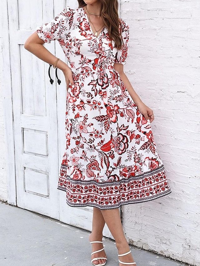 Embrace the spirit of the season with this stunning floral midi dress that promises to elevate your wardrobe essentials.