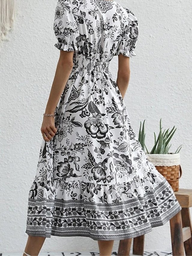 Step into a realm of elegance and grace with this exquisite midi dress, designed for the modern woman who embodies effortless style. Perfect for summer getaways or a chic stroll through the streets, this dress is your go-to choice for a blend of fashion and comfort.