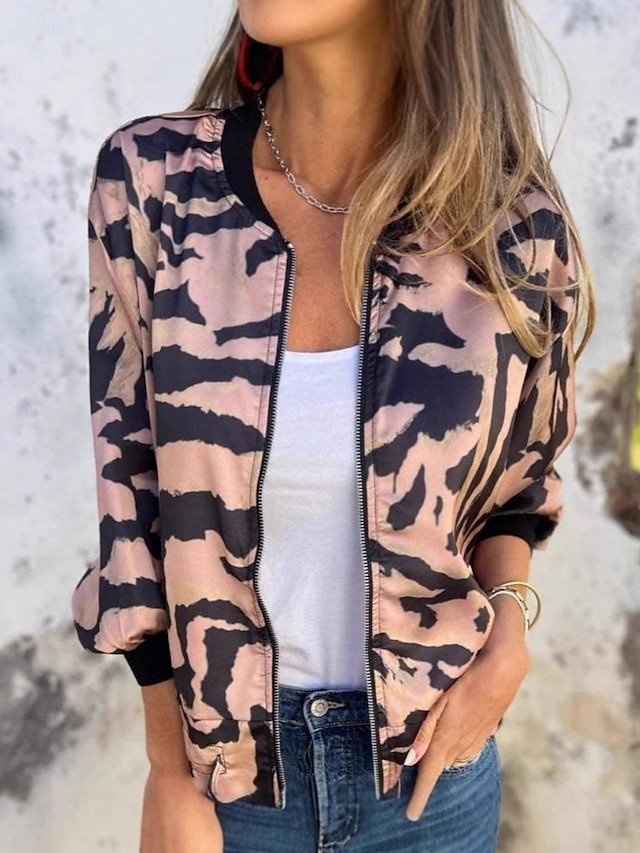 Discover elegance with our Leopard Print Bomber Jacket. Perfect for stylish and comfortable daily wear. Available in Pink Apricot. Shop now!
