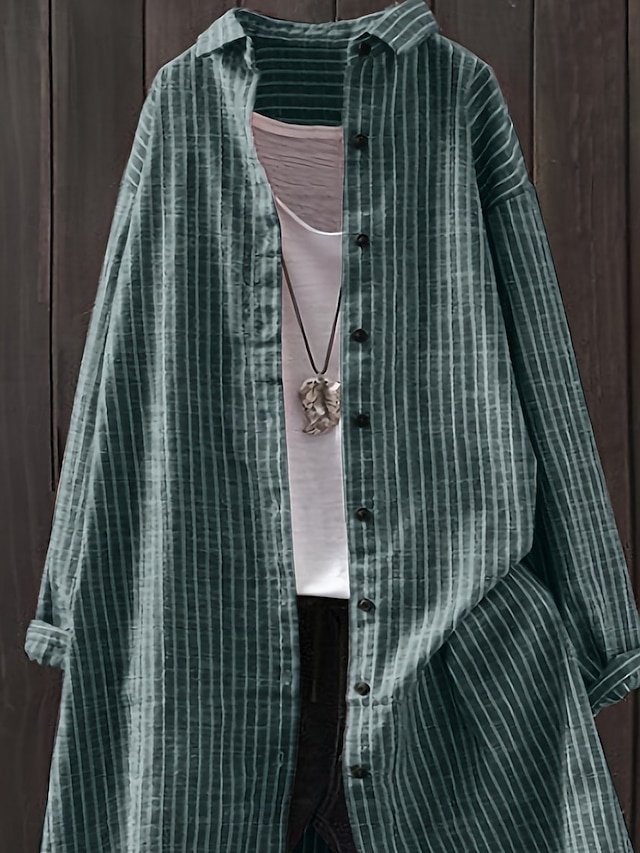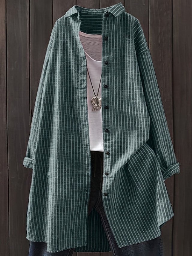 Casual Regular Fit Plaid Turndown Long Sleeve Long Shirt Jacket