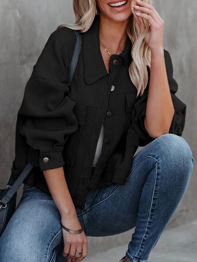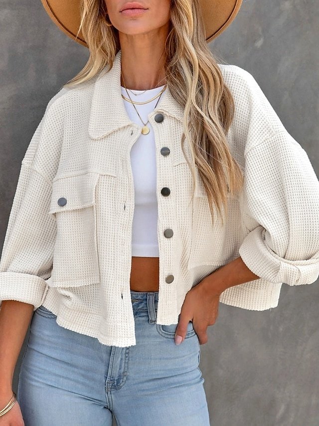 Discover our stylish Casual Regular Fit Turndown Jacket, perfect for versatile wear. Available in Black, White, and Green for a chic spring look.