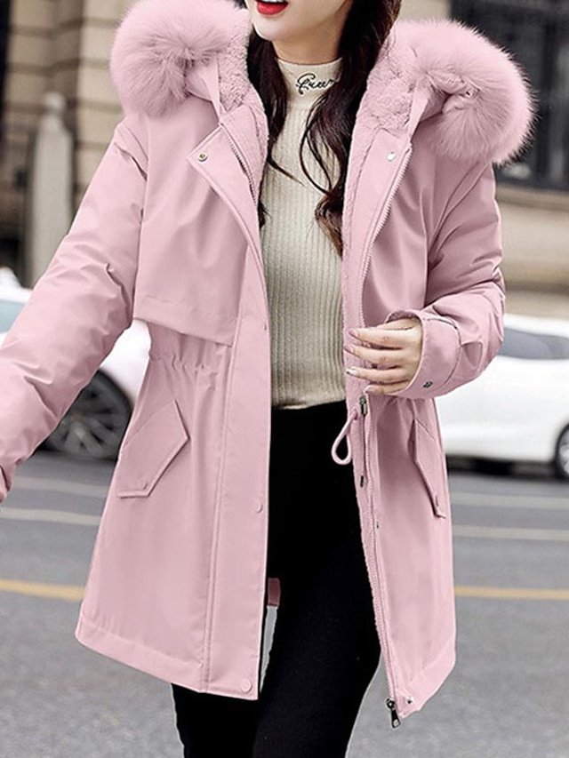 Discover elegance in winter with our cosy regular fit solid hoodie parka. Perfect for any occasion, combining style with comfort.