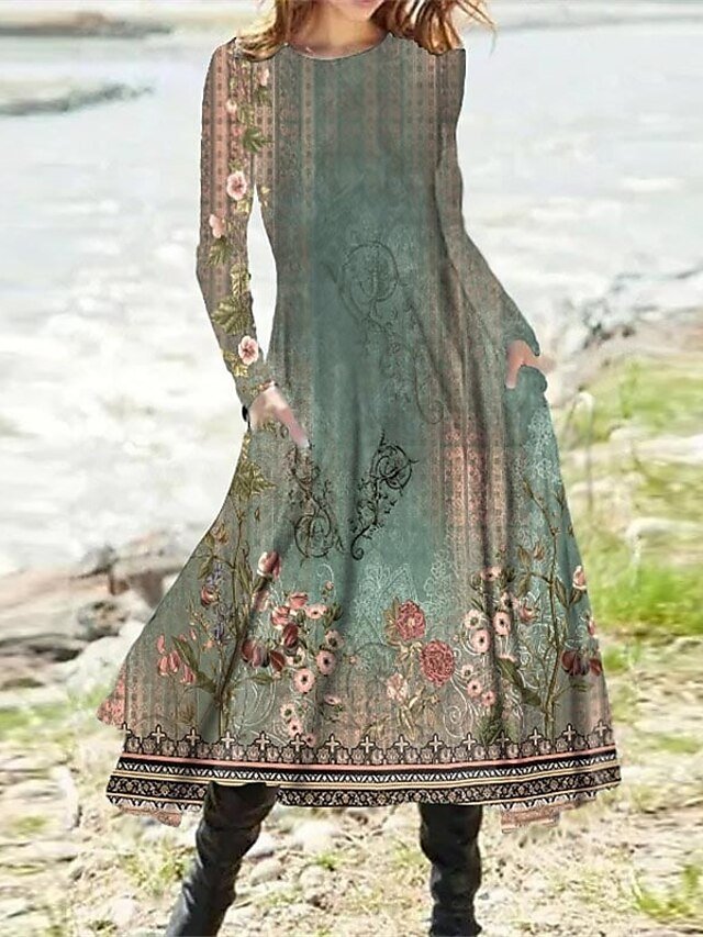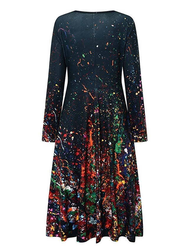 Step into a realm of vibrant elegance with our Casual Regular Fit Tie Dye Crew Neck Long Sleeve Midi Dress. Perfect for the fashion-forward woman, this dress effortlessly combines comfort with a bold style statement, making it a must-have for winter getaways and formal occasions alike.