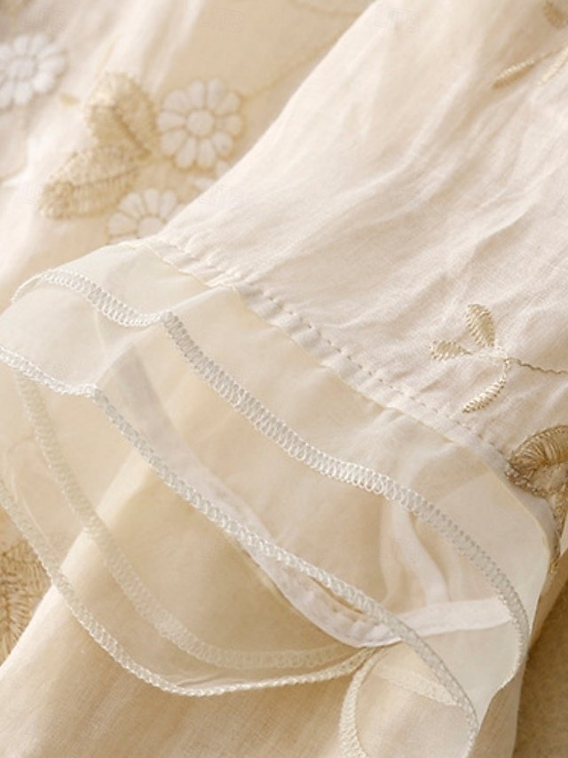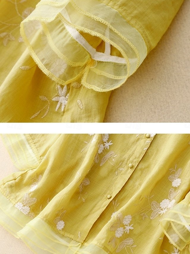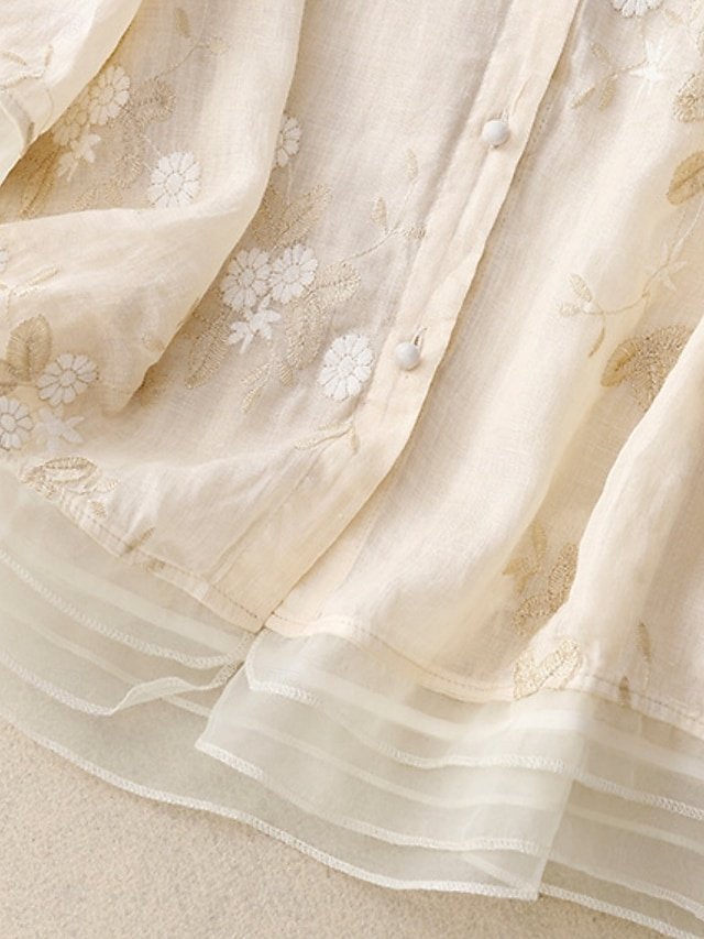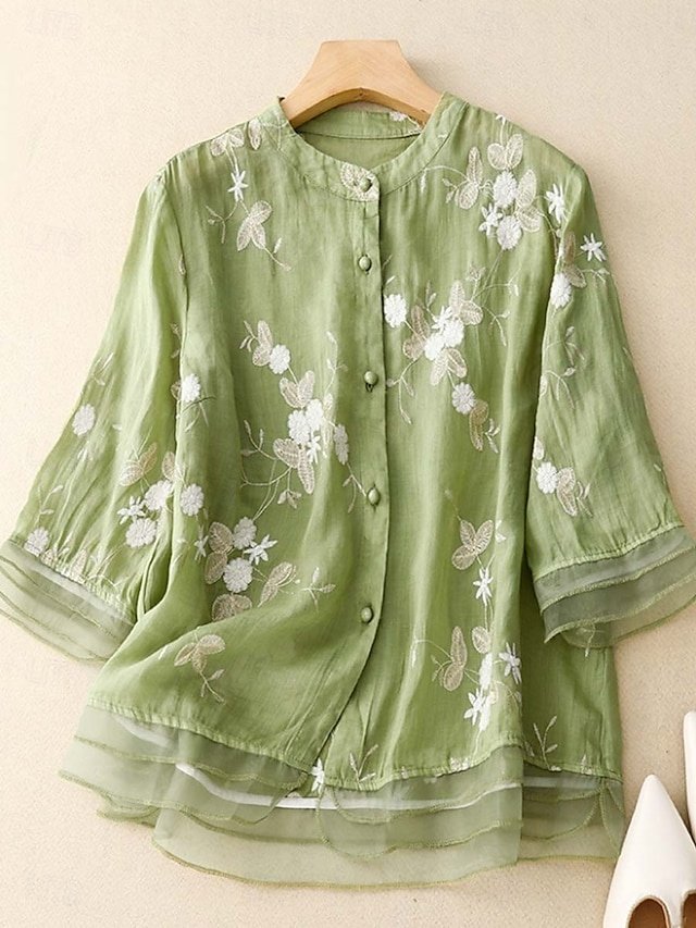Step into a world of timeless elegance with our Casual Regular Floral High Neck 3/4 Sleeve Embroidered Top. Perfectly blending style and comfort, this top is a must-have for any fashion-forward wardrobe. Whether you’re strolling through a vibrant spring garden or enjoying a sunny autumn afternoon, this top will ensure you do so with grace and poise.