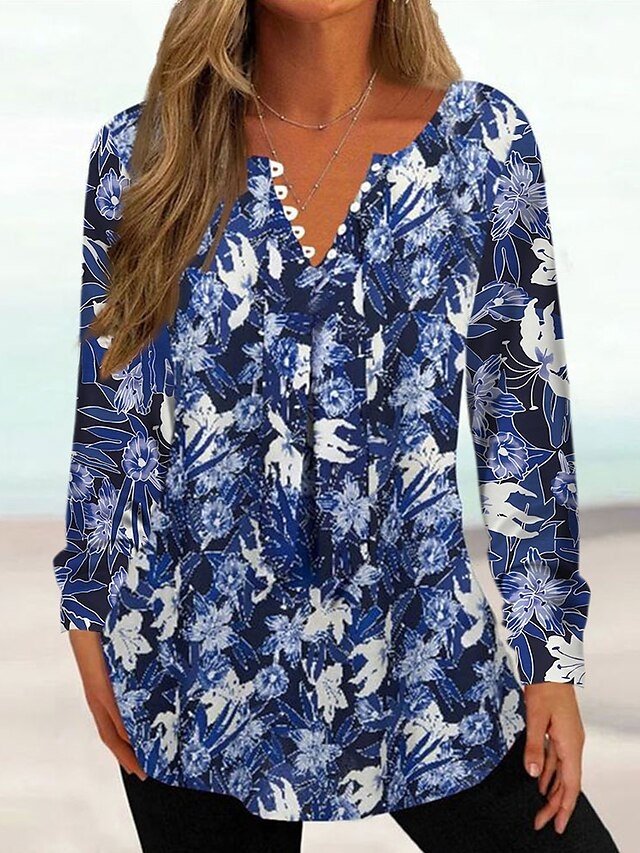 Elevate your style with our chic floral long-sleeve tunic top, perfect for casual and holiday wear. Available in Blue, Fuchsia, Brown, and Khaki.