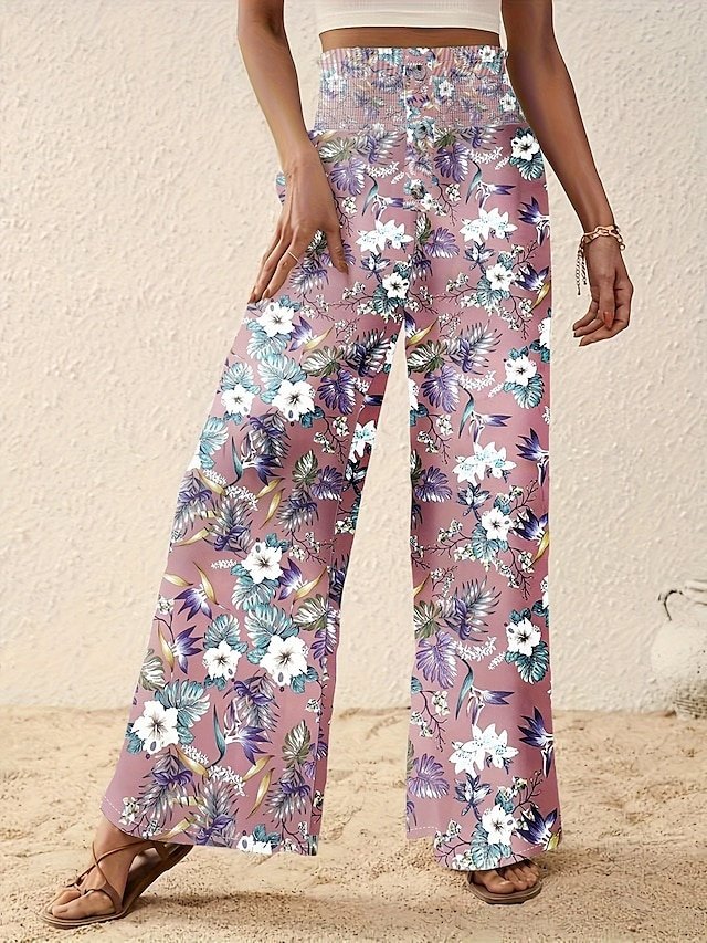 Elevate your everyday ensemble with our exquisite Casual Regular Floral Wide Leg Long Trousers. Perfect for both a charming weekend escape or a leisurely stroll through the city, these trousers offer a harmonious blend of comfort and style. Crafted for the modern woman who values both elegance and ease, these trousers are a staple addition to your wardrobe.