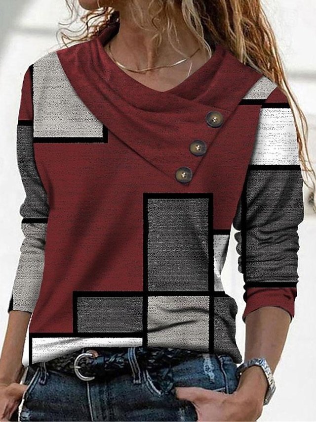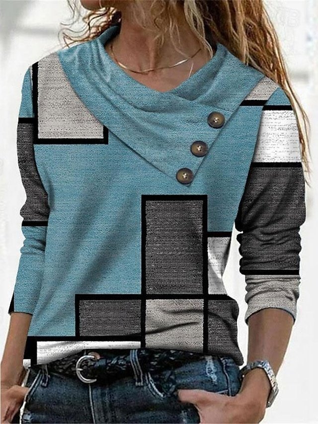 Indulge in the elegance of everyday style with our exquisite geometric tops, designed to elevate your autumn and winter wardrobe. Embodying a blend of contemporary patterns and classic cuts, this piece is your go-to for a chic and effortless look.