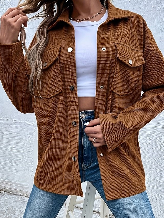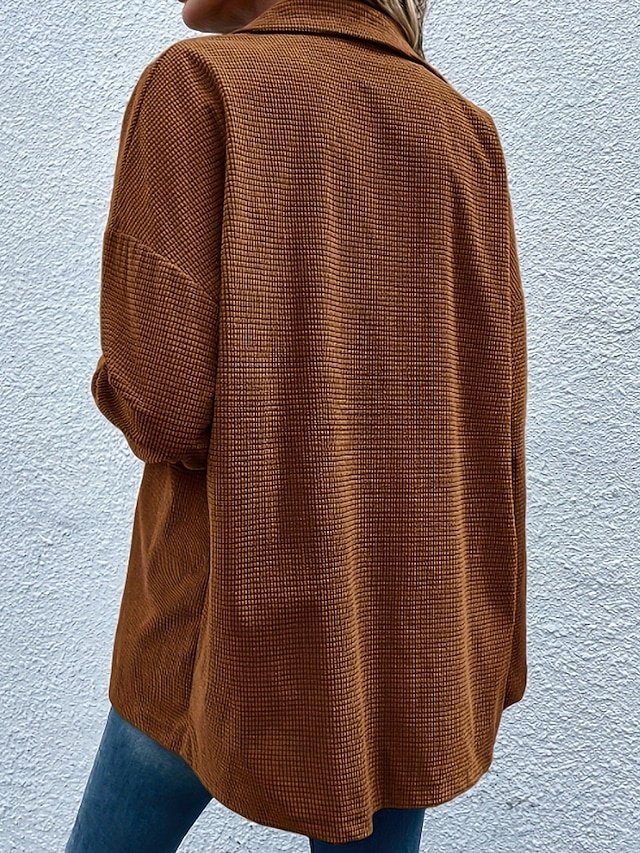 Elevate your autumn wardrobe with our exquisitely crafted Casual Regular Plain Turndown Long Sleeve Jacket, designed for the fashion-conscious woman who appreciates both style and comfort. This jacket is your perfect companion for an effortlessly chic look, whether you’re heading out for a casual day out or enjoying a relaxed weekend. Its timeless design ensures you’ll be turning heads for all the right reasons.