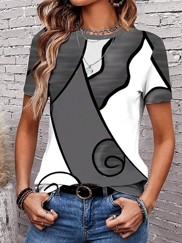 Elevate your everyday style with our chic and versatile Casual Regular Print Crew Neck Short Sleeve Summer Top. This wardrobe staple is perfect for the modern woman who seeks both comfort and elegance in her daily wear. Whether you’re heading to a casual brunch or a relaxed outing, this top provides the perfect blend of style and simplicity.