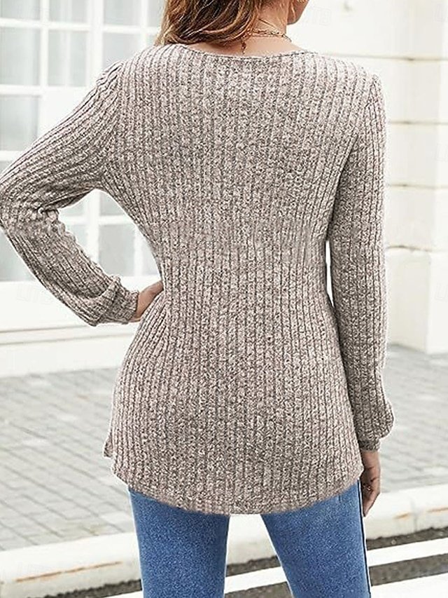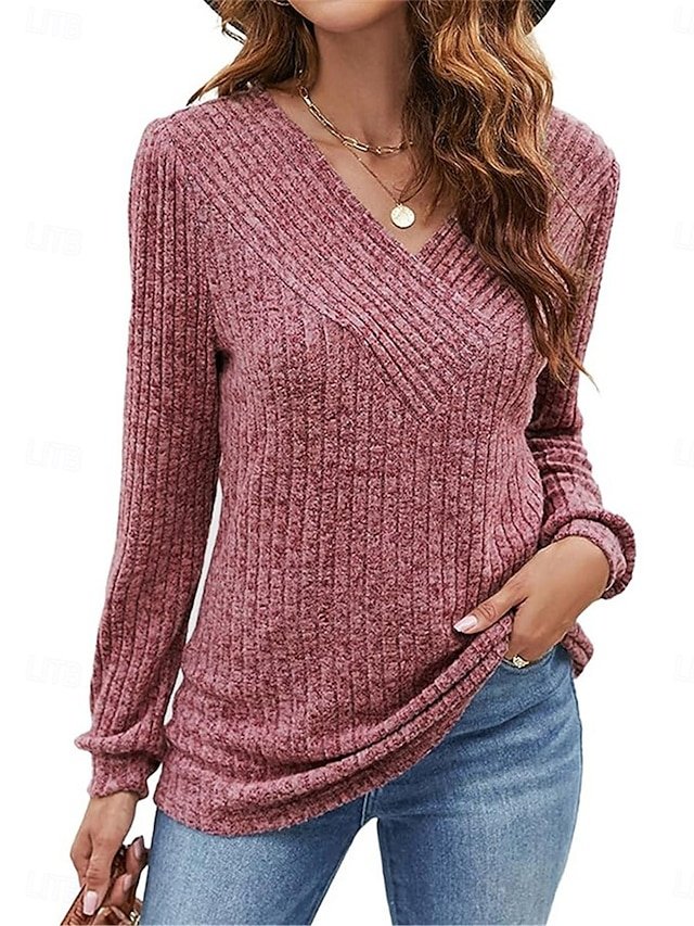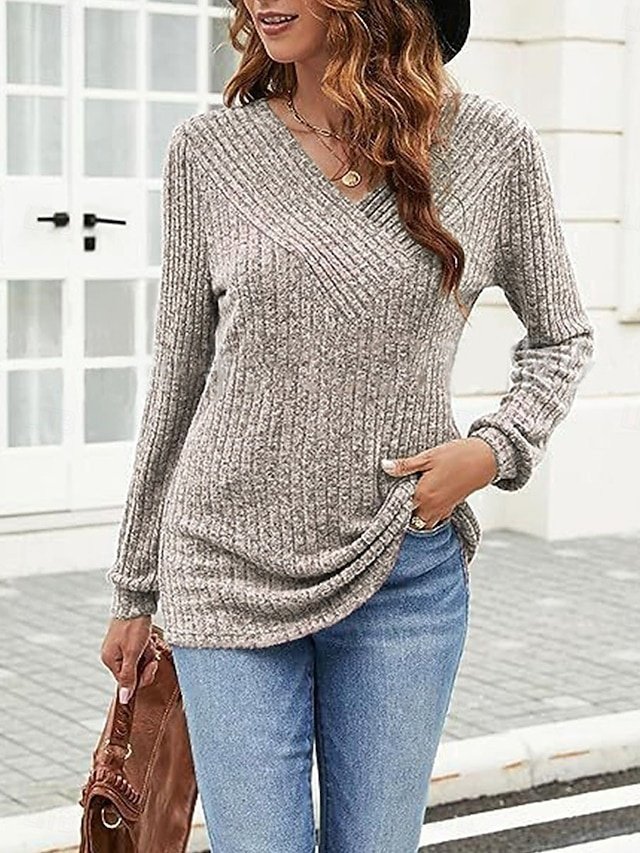 Embrace the cosy elegance of the cooler months with this luxurious Casual Regular Pure Colour V Neck Long Sleeve Knit Jumper. Perfectly designed for the modern woman who desires a blend of style and comfort, this piece is an essential addition to your autumn and winter wardrobe. Whether you’re enjoying a leisurely weekend or meeting friends for coffee, this jumper promises to keep you warm and stylish.