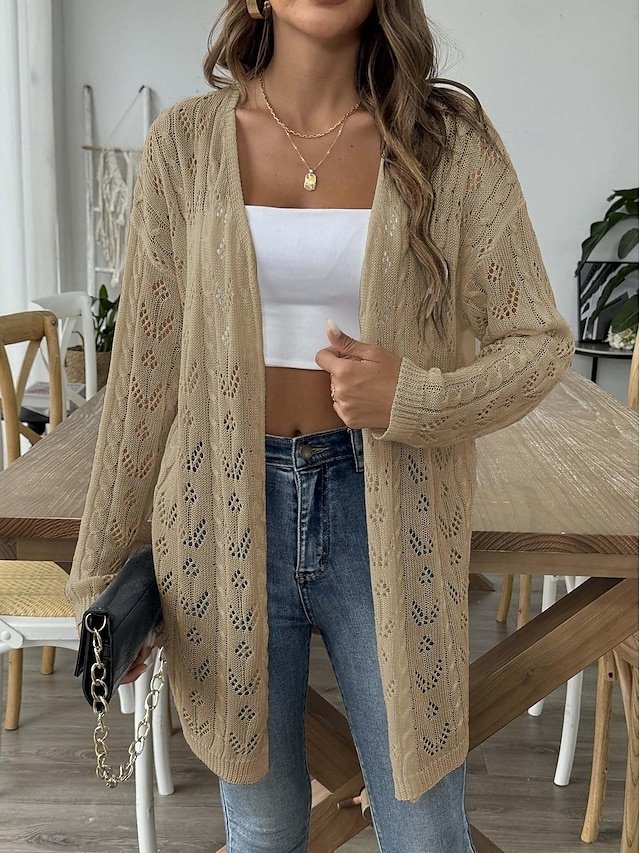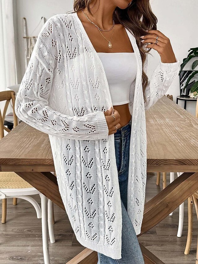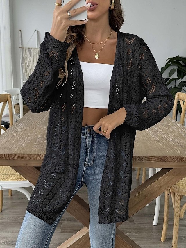 Discover our elegant casual solid ribbed cardigan coat. A chic choice for spring and fall, with open front and long sleeves. Available in black and white.