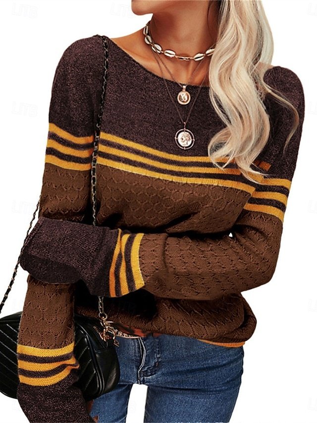 Elevate your seasonal wardrobe with our chic and cosy Casual Regular Striped Crew Neck Long Sleeve Knit Jumper. Perfectly designed for the discerning woman who appreciates both style and comfort, this jumper is your ideal companion for both outdoor adventures and leisurely weekends.