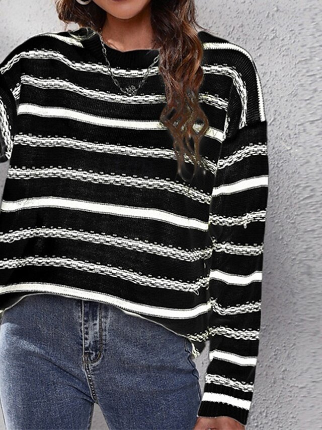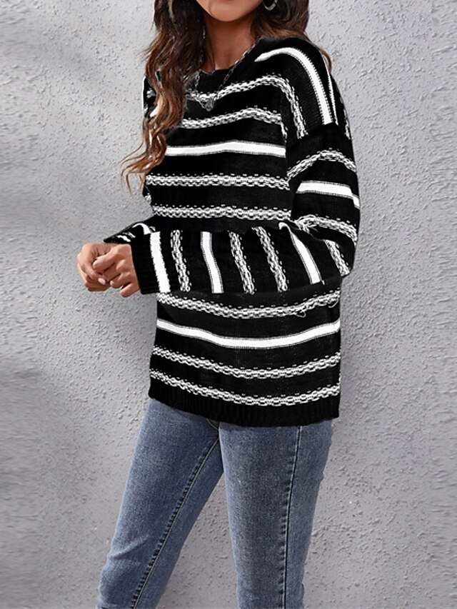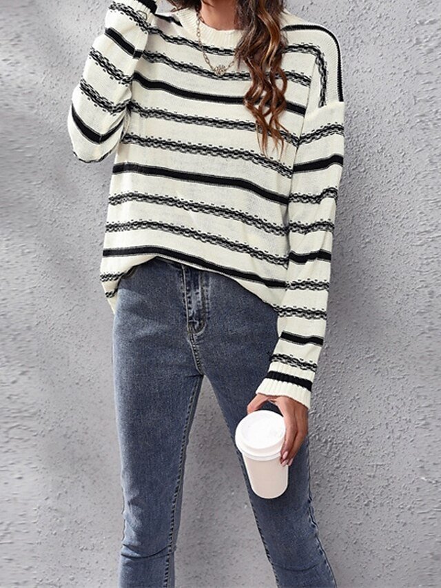 Step into a realm of comfort and style with our Casual Regular Striped Crew Neck Long Sleeve Knit Top. Perfectly blending sophistication and casual charm, this top is your ideal companion for any occasion, whether it’s a leisurely day out or a cosy evening in. Its classic striped pattern is timeless, making it a versatile addition to your autumn and winter wardrobe.