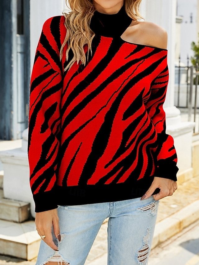 Embrace the chic allure of effortless style with our Casual Regular Striped Stand Collar Cold Shoulder Long Sleeve Pullover. Perfect for elevating your autumn and winter wardrobe, this luxurious knit top is designed to make you stand out with its sophisticated stripes and modern cold shoulder detail.