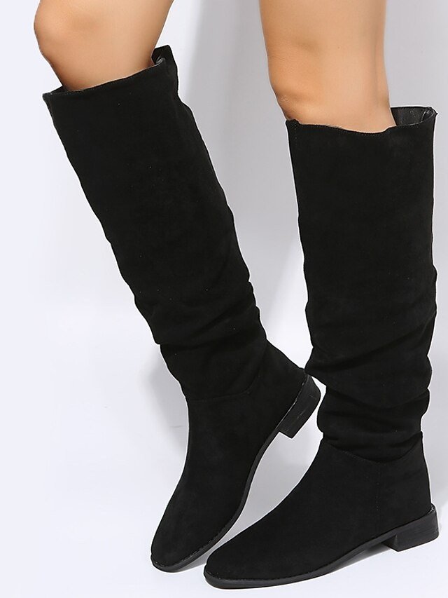 Casual Slouchy Tan Knee-High Low Heel Suede Boots