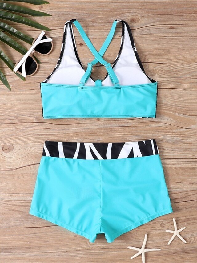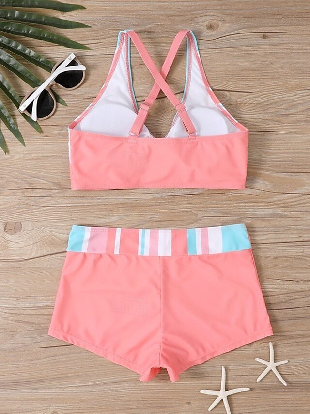 Casual Stretchy Criss Cross Open Back Sleeveless Two Piece Tankini