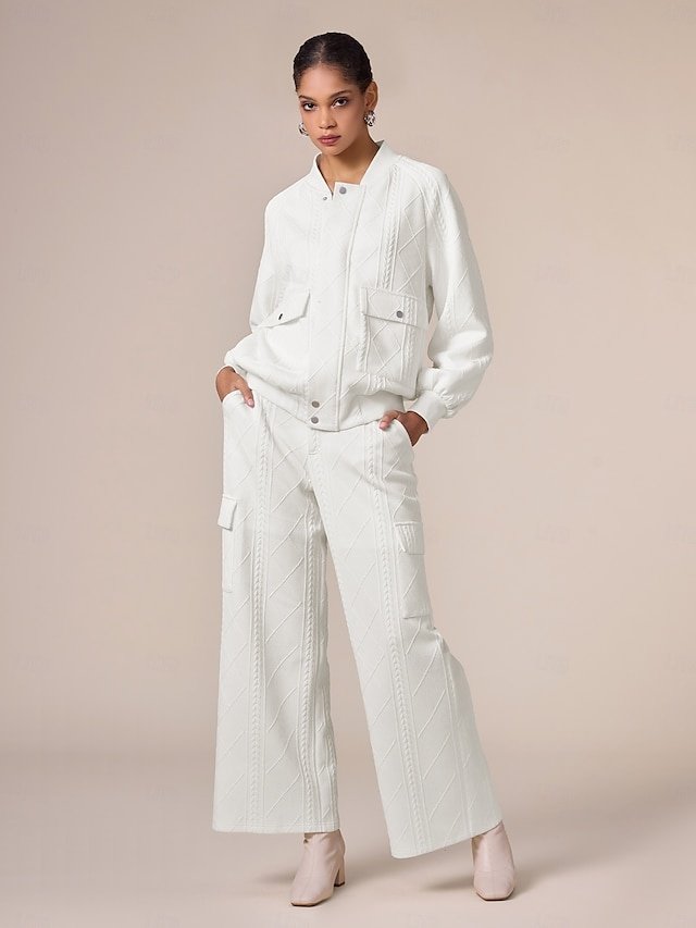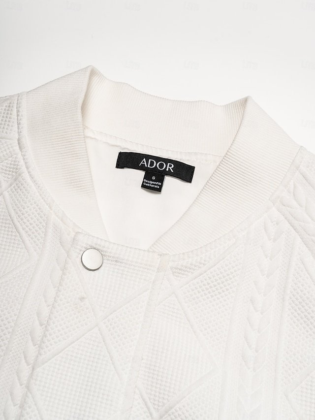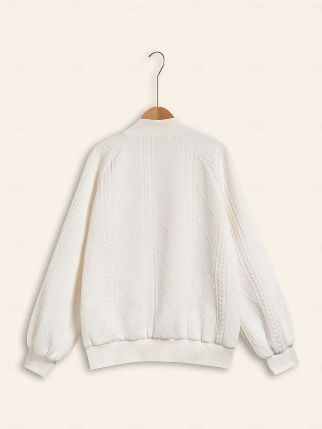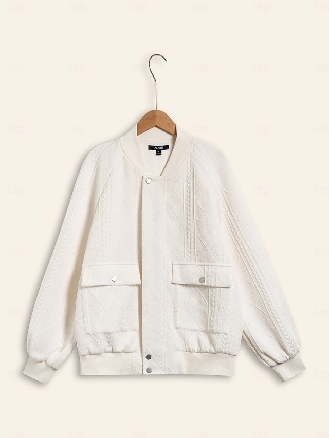 Discover luxury with our Casual Textured Crew Neck Raglan Sleeve Bomber Jacket. Elevate your style with this exquisite piece. Shop now!