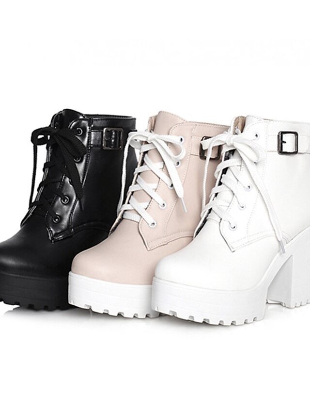 Chic Ankle Platform Lace Up Block Heel Boots