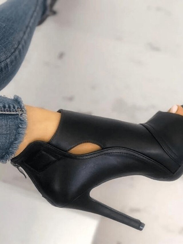 Chic Black Peep Toe Stiletto Leather Ankle Boots