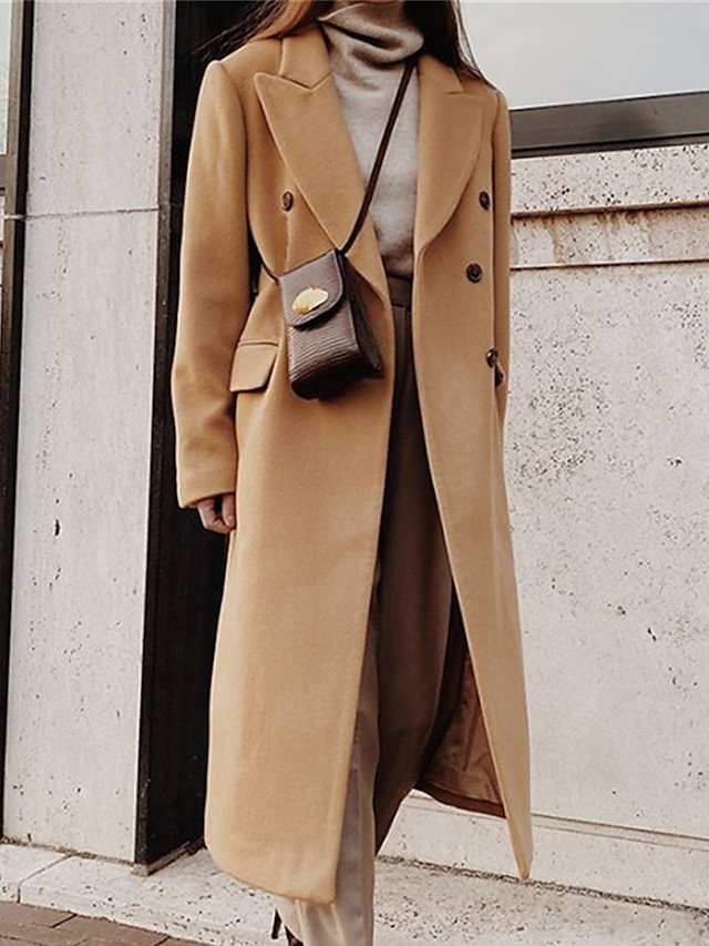 Discover our elegant, warm, and windproof long double breasted lapel trench coat. Perfect for stylish women this winter.