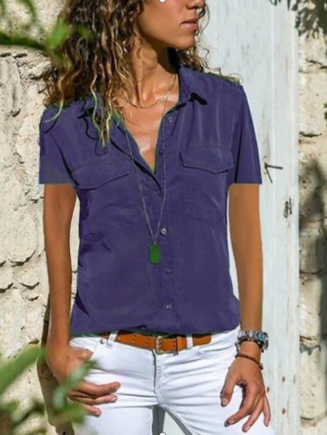 Daily Loose Solid Shirt Collar T-shirt Sleeve Blouse