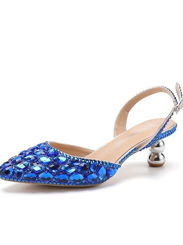 Step into luxury with Blue Rhinestone Slingback Heels, ideal for weddings and evening parties. Elevate your style with elegance and sparkle.
