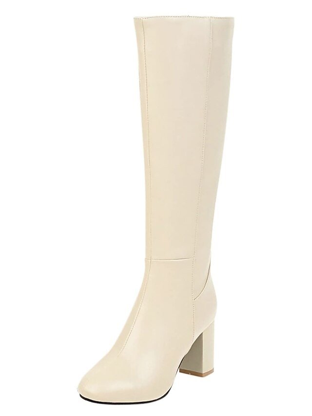 Discover elegant brown knee-high boots with a side zipper and block heels, perfect for versatile autumn and winter fashion.