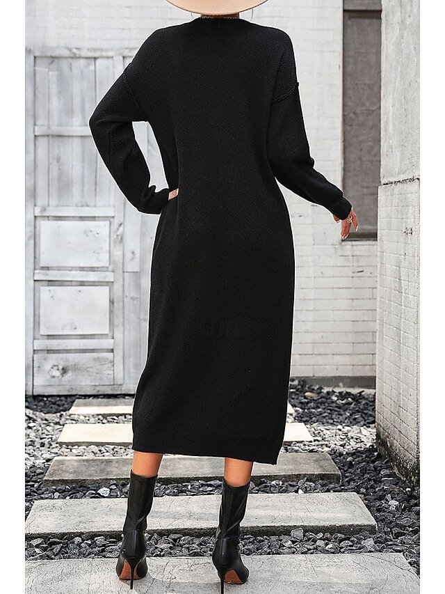 Elegant Casual Solid Crew Neck Long Sleeve Sweater Dress