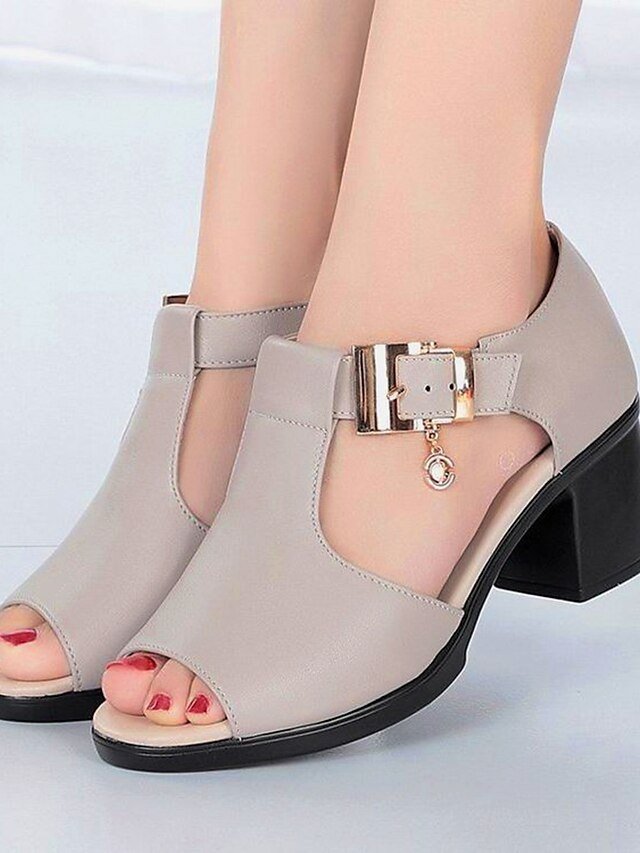 Discover elegant open-toe sandals with chunky heels in black faux leather, perfect for summer parties or formal occasions. Luxurious style and comfort.