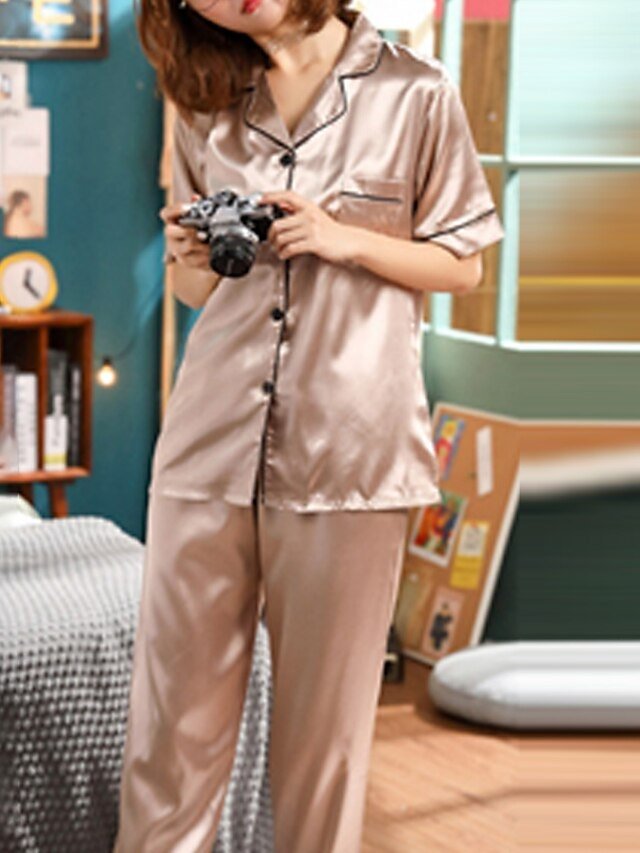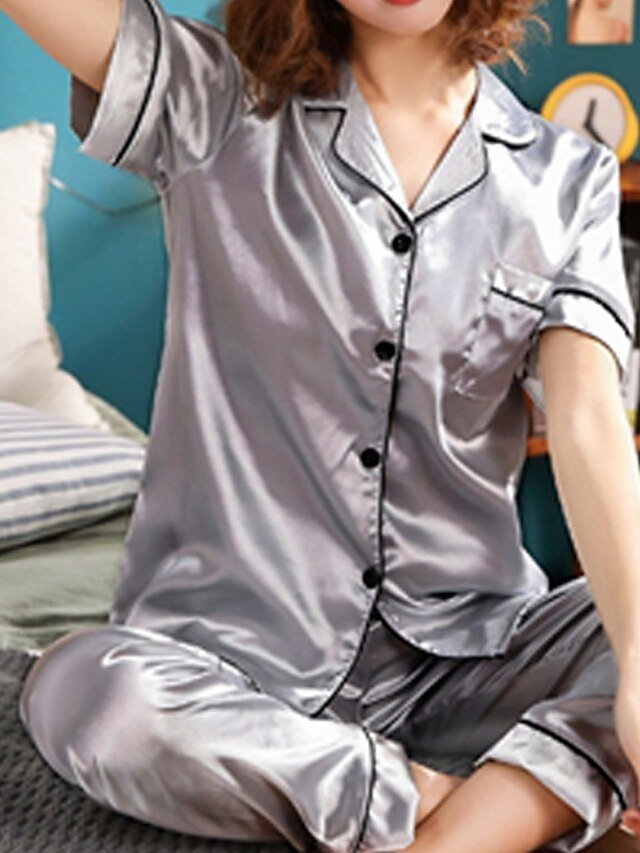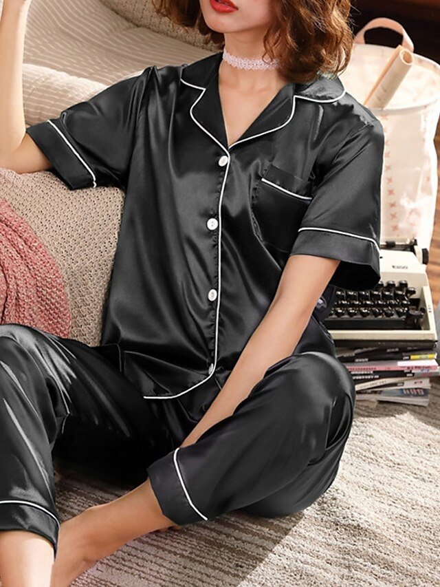 Indulge in the ultimate luxury of lounging with our Elegant Comfort Fit Satin Pajama Set. Perfect for the discerning woman who values both style and comfort, this exquisite loungewear set is designed to elevate your relaxation time. Crafted from a sumptuous silk-like fabric, it offers an opulent feel against your skin, making every moment at home an experience in luxury.