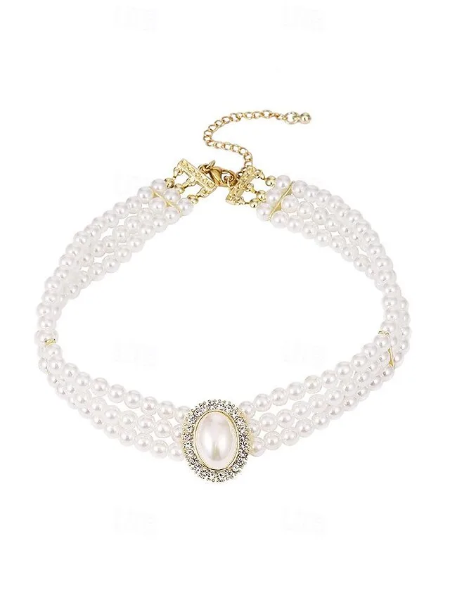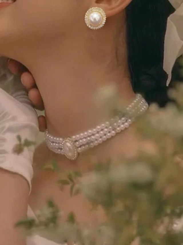 Elegant Doppelstrang Perlenkette Kristall V-Ausschnitt Ärmellos Schmuckset