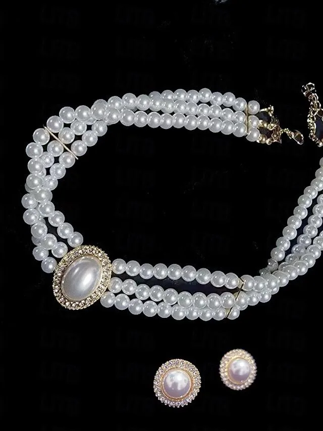 Edles Doppelstrang-Perlenkette Schmuckset mit Kristallakzent. Perfekt für Hochzeit und Abendmode – jetzt stilvoll entdecken.