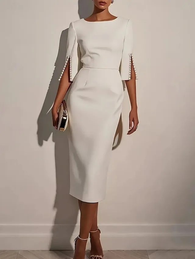 Elegant Figurbetont Einfarbig U-Boot-Ausschnitt Dreiviertelarm Midikleid