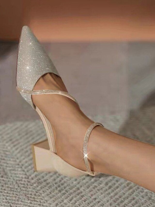 Step into a world of sophistication with our Elegant Glitter Mesh Pointed Toe Block Heel Ankle Strap Shoes. Perfect for bridal elegance or adding a touch of glamour to any party, these shoes are a testament to refined style and exquisite craftsmanship.
