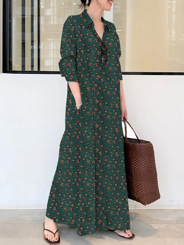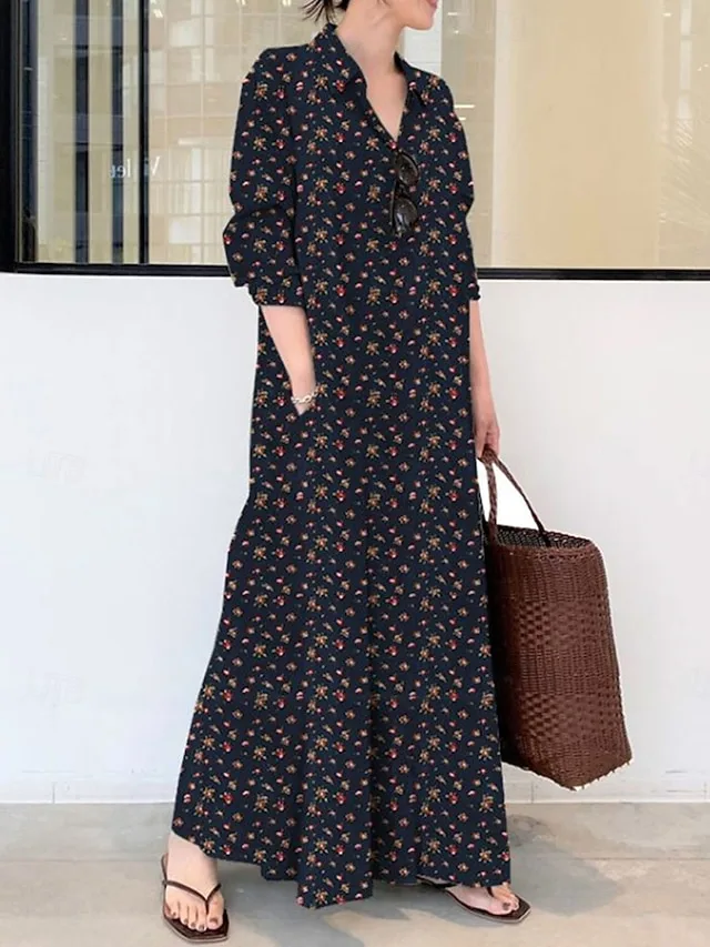 Elegantes Grafik-Maxikleid mit Hemdkragen und lässiger Passform. Jetzt stilvoll entdecken und bequem tragen.