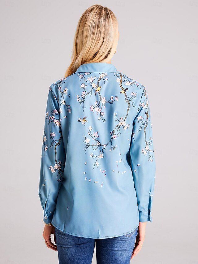 Elegant Loose Floral Print Shirt Collar Long Sleeve Blouse